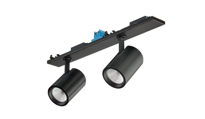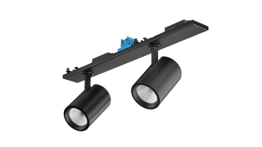 Polycarbonaat, Zwart, DALI-dimmen InterAct System-ready, 7700 lm, 57.5 W, 131 lm/W, PremiumWhite, 3000 K, (0.422, 0.386), CRI>90, Sterk reflecterende metalen reflector, middelbrede bundel, 20 tot 40 graden, IP 20 | Bescherming tegen vingers, IK02 | 0,2 J standaard, Veiligheidsklasse II, Spanningsrail