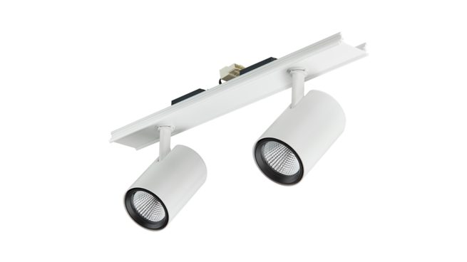 Polycarbonaat, Wit, DALI-dimmen InterAct System-ready, 5700 lm, 43.5 W, 139 lm/W, PremiumWhite, 3000 K, (0.422, 0.386), CRI>90, Sterk reflecterende metalen reflector, rechthoekige bundel, IP 20 | Bescherming tegen vingers, IK02 | 0,2 J standaard, Veiligheidsklasse II, Spanningsrail